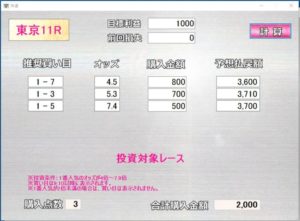 見て頂いてわかるようにNumber0は簡単な操作で的中馬券を算出して購入金額の配分までしてくれます。